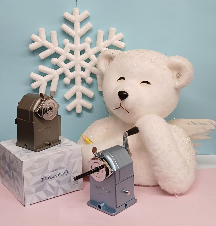 PROMO d'hiver 2026 Caran d'Ache taille-crayon de table en métal=> édition spéciale en bleu glacier à -10% jusqu'au 31 janvier 2026également disponible en gris et en rouge